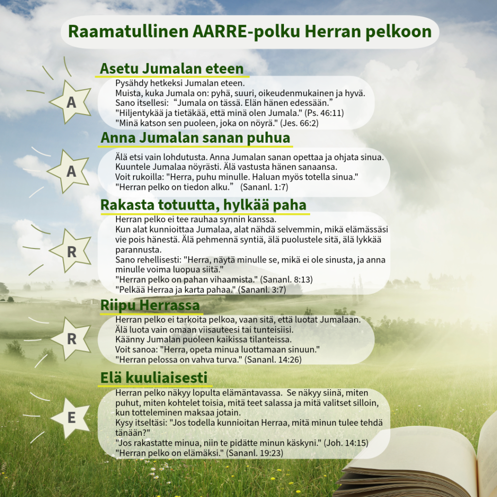 Kun puhumme Herran pelosta, moni reagoi heti kielteisesti. Sana pelko voi kuulostaa raskaalta, ahdistavalta tai torjuvalta. Raamatun käyttämä Herran pelko ei kuitenkaan tarkoita ensisijaisesti sairasta kauhua, demonista pelkoa tai ihmistä musertavaa ahdistusta. Se tarkoittaa pyhää kunnioitusta, syvää nöyryyttä, Jumalan suuruuden tunnustamista, hänen sanansa vakavasti ottamista ja halua elää kuuliaisesti hänen edessään.