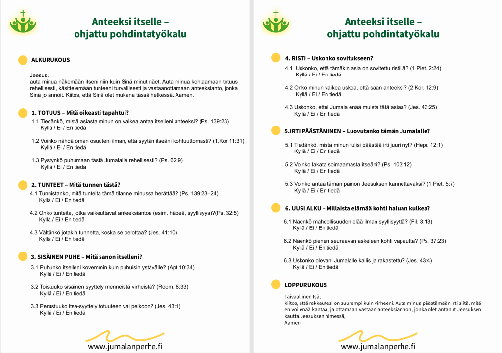 Anteeksianto itselle – ohjattu pohdintatyökalu