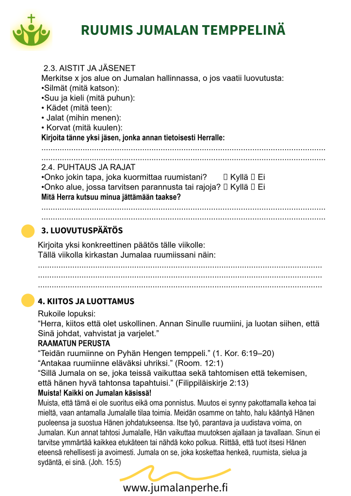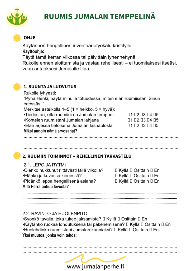 Arviontityökalu siihen, kuinka hyvin huolehdin Pyhän Hengen temppelistäni