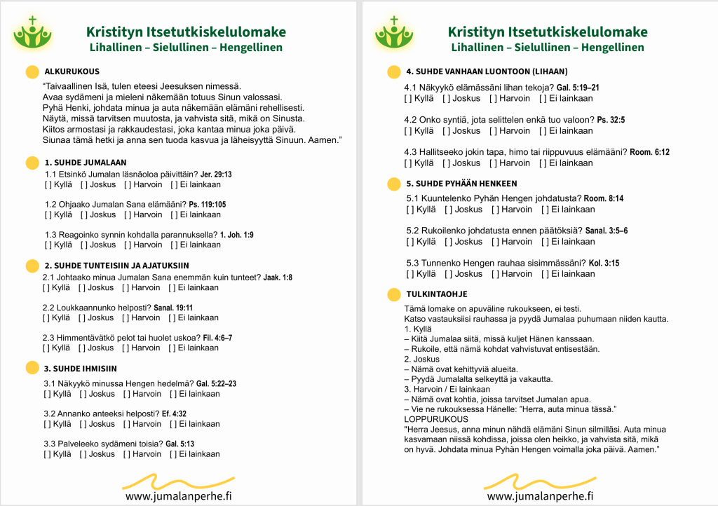 Tämä Kristityn Itsetutkiskelulomake ”työkalu” on vapaasti ladattavissa sivun alareunassa olevasta ”lataa” painikkeesta