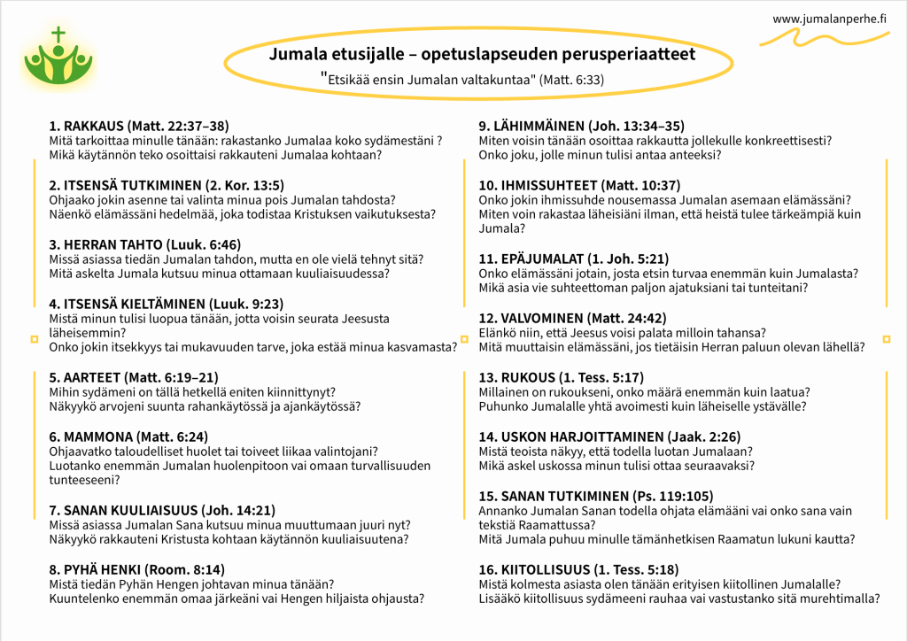 Jumala Etusijalle – Opetuslapseuden perusperiaatteet